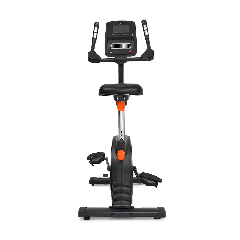 Стильный домашний велотренажёр выполнен в чёрном матовом цвете с оранжевыми ручками регулировки. Благодаря лаконичному стилю впишется в любой интерьер.